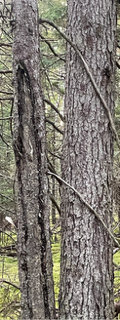 I’m quite sure the bark you are sharing with me is not fir. It can take a bit of time to get used to seeing how the resin blisters appear on older trees—but they are still there (jb-in the bark if the tree is indeed a fir). And fir bark does not get that fractured appearance I see in the (larger) tree in your photo… Firs don’t get fractured/scaly/ridged bark—certainly not at the size of your tree.