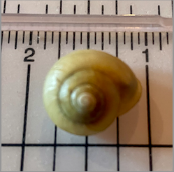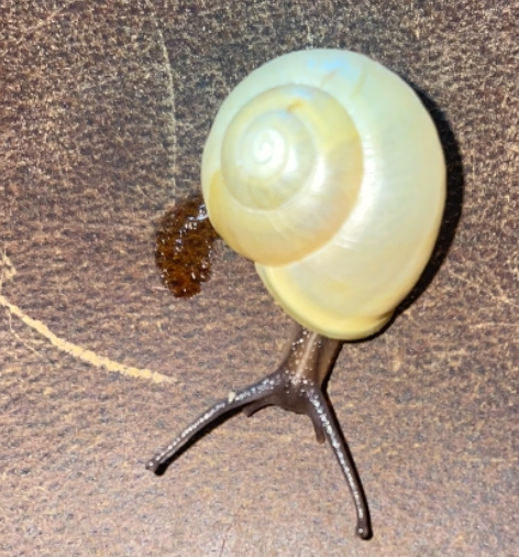 This morning, on my way out the door, I found a land snail in the driveway. What caught my eye was the trail it left as it moved — shown in the top photo. I thought that was amazing, and I joked with my wife that it must be lost… or drunk! This specimen was about .75 inch wide, had a relatively flattish spire, and was pale yellow in color. I went to iNaturalist to see if I could positively identify it, but alas, there’s just too much ambiguity for a novice like me. Generally speaking, my guess is that this is most likely a White-lipped Snail (Cepaea hortensis). If not, other guesses are a leaf snail (Family Hygromiidae) or a member of Helix Snails (Family Helicidae). Meanwhile, my AI assistant believes it is Cellar Glass Snail (Oxychilus cellarius).
